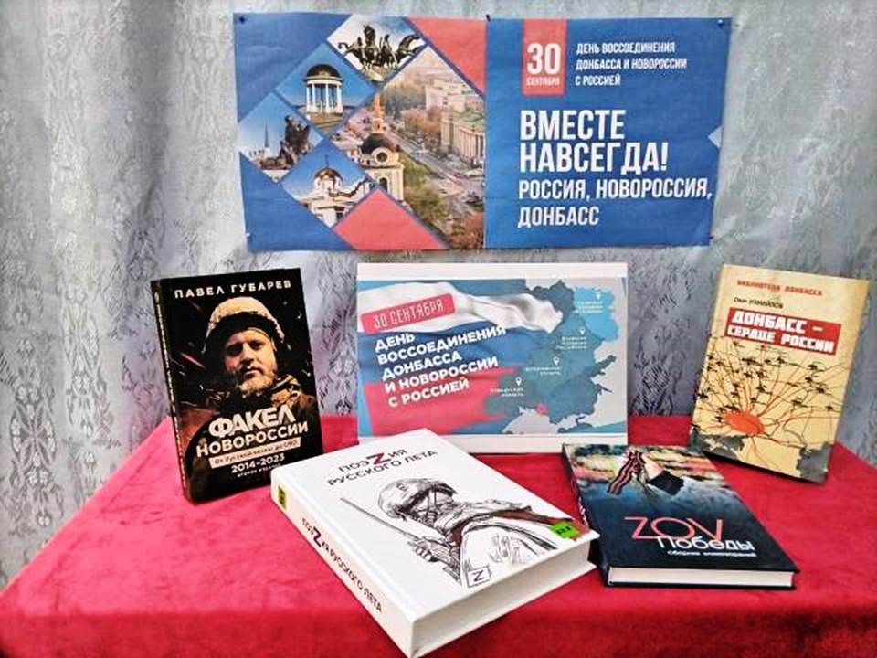 В преддверии этой даты в читальном зале библиотеки оформлена книжная выставка «30сентября день воссоединения Донбасса и Новороссии с Россией».