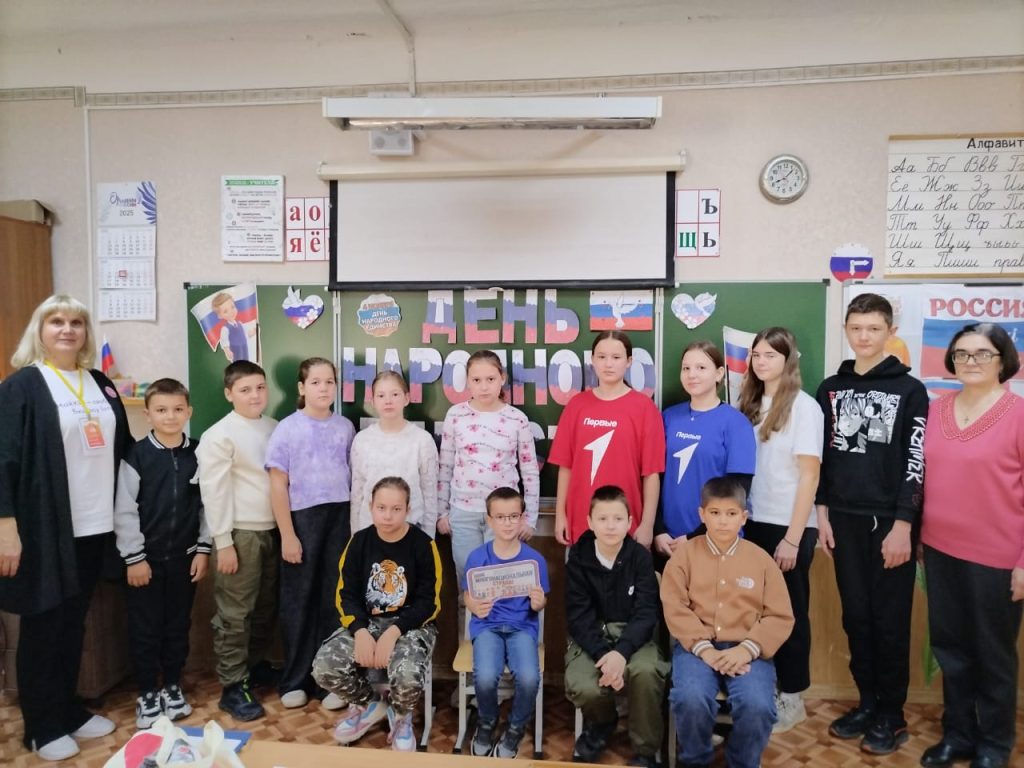 В дни осенних каникул в преддверии праздника «День народного единства» работники библиотеки провели исторический экскурс «Во славу Отечества, во славу России». Библиотекарь рассказала о том, как был учреждён новый для нашей страны праздник.