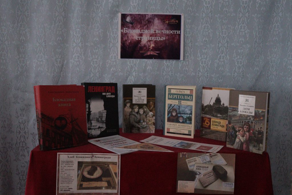 27 января – особая дата в истории нашей страны. В этот день 1944 года была прорвана блокада Ленинграда, которая продолжалась 900 долгих дней и ночей. В читальном зале библиотеки оформлена книжная выставка «Блокадной вечности страницы», которую читатели могут посетить до 28 января . На выставке представлена художественная и документальная литература, которая рассказывает о периоде тяжелейших испытаний, страданий и героизме людей в блокадном городе.