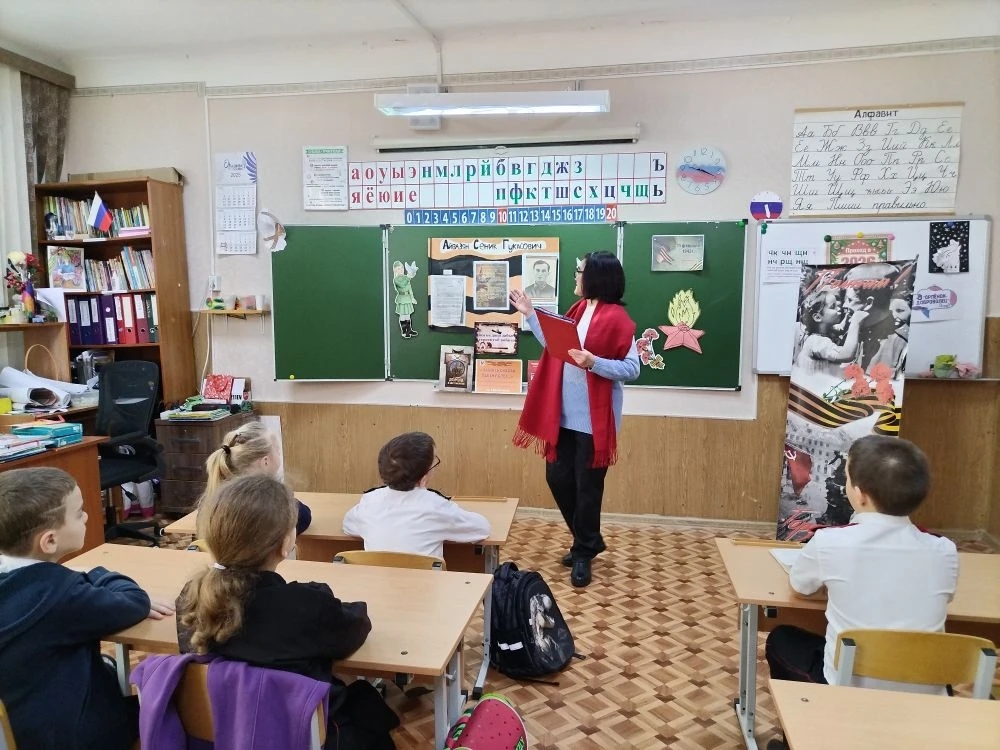 К освобождению станицы Сергиевской и хутора Нижний от немецко -фашистских захватчиков работники  библиотеки в МАОУ СОШ № 6 провели урок мужества «Не дрогнули в бою за станицу мою».
