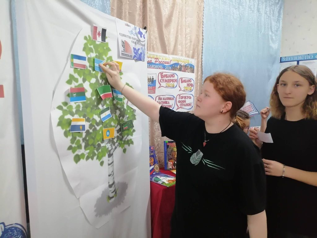 Нет на земле ни одного государства, где жило бы столько разных народов, как в России. Присутствующие узнали, почему Россию называют многонациональной и сколько в ней проживает народов. Затем познакомились с историей образования великой многонациональной державы, начиная с древних времен и до современной действительности.  На мероприятии ребята почувствовали единство через магию книги и слова, смогли погрузиться в удивительный мир литературы, познакомились с культурой и традициями разных народов страны.